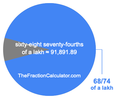 If you want to calculate 68/74 of a lakh (sixty-eight seventy-fourths of a lakh), then you want to divide one lakh (1,00,000) into 74 equal pieces and calculate the sum of 68 of those pieces.