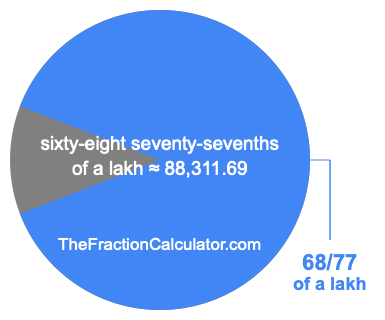 If you want to calculate 68/77 of a lakh (sixty-eight seventy-sevenths of a lakh), then you want to divide one lakh (1,00,000) into 77 equal pieces and calculate the sum of 68 of those pieces.