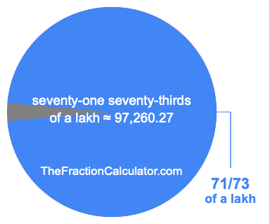 If you want to calculate 71/73 of a lakh (seventy-one seventy-thirds of a lakh), then you want to divide one lakh (1,00,000) into 73 equal pieces and calculate the sum of 71 of those pieces.