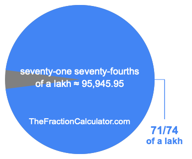 If you want to calculate 71/74 of a lakh (seventy-one seventy-fourths of a lakh), then you want to divide one lakh (1,00,000) into 74 equal pieces and calculate the sum of 71 of those pieces.