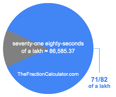 If you want to calculate 71/82 of a lakh (seventy-one eighty-seconds of a lakh), then you want to divide one lakh (1,00,000) into 82 equal pieces and calculate the sum of 71 of those pieces.