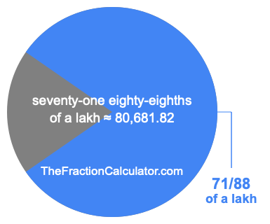 If you want to calculate 71/88 of a lakh (seventy-one eighty-eighths of a lakh), then you want to divide one lakh (1,00,000) into 88 equal pieces and calculate the sum of 71 of those pieces.