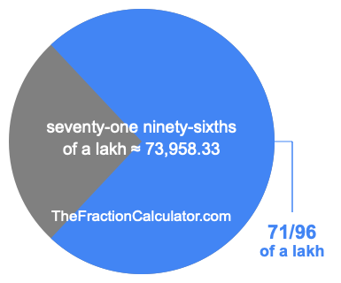 If you want to calculate 71/96 of a lakh (seventy-one ninety-sixths of a lakh), then you want to divide one lakh (1,00,000) into 96 equal pieces and calculate the sum of 71 of those pieces.