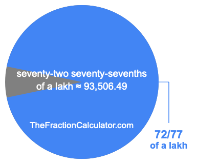 If you want to calculate 72/77 of a lakh (seventy-two seventy-sevenths of a lakh), then you want to divide one lakh (1,00,000) into 77 equal pieces and calculate the sum of 72 of those pieces.