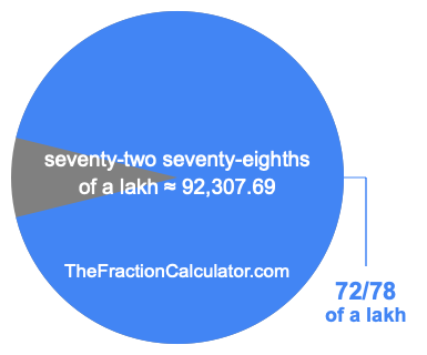 If you want to calculate 72/78 of a lakh (seventy-two seventy-eighths of a lakh), then you want to divide one lakh (1,00,000) into 78 equal pieces and calculate the sum of 72 of those pieces.