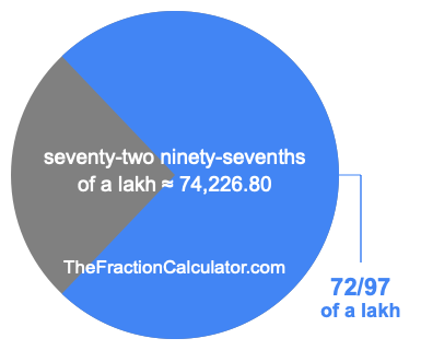 If you want to calculate 72/97 of a lakh (seventy-two ninety-sevenths of a lakh), then you want to divide one lakh (1,00,000) into 97 equal pieces and calculate the sum of 72 of those pieces.
