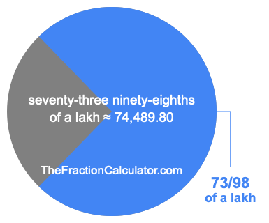 If you want to calculate 73/98 of a lakh (seventy-three ninety-eighths of a lakh), then you want to divide one lakh (1,00,000) into 98 equal pieces and calculate the sum of 73 of those pieces.