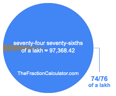 If you want to calculate 74/76 of a lakh (seventy-four seventy-sixths of a lakh), then you want to divide one lakh (1,00,000) into 76 equal pieces and calculate the sum of 74 of those pieces.