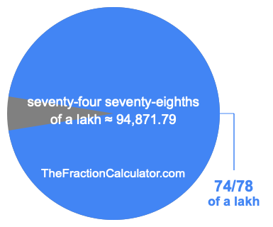 If you want to calculate 74/78 of a lakh (seventy-four seventy-eighths of a lakh), then you want to divide one lakh (1,00,000) into 78 equal pieces and calculate the sum of 74 of those pieces.