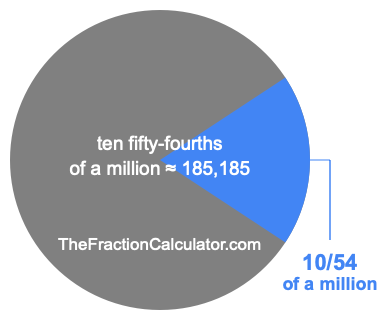 Therefore, 10/54 of a million is the quotient of one million divided by 54, multiplied by 10. Here is the math and the answer: