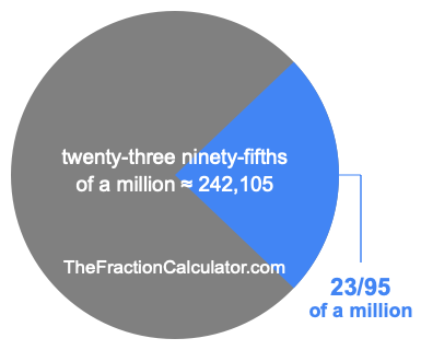 Therefore, 23/95 of a million is the quotient of one million divided by 95, multiplied by 23. Here is the math and the answer: