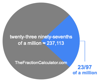 Note that 23/97 of a million will result in the same answer regardless of what you are referring to. For example, you might calculate 23/97 of a million dollars or 23/97 of a million people.