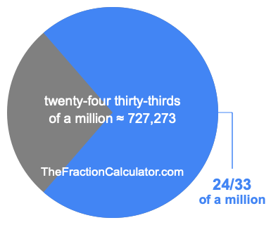 Therefore, 24/33 of a million is the quotient of one million divided by 33, multiplied by 24. Here is the math and the answer: