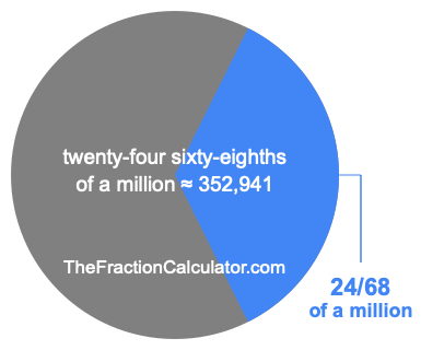 Therefore, 24/68 of a million is the quotient of one million divided by 68, multiplied by 24. Here is the math and the answer: