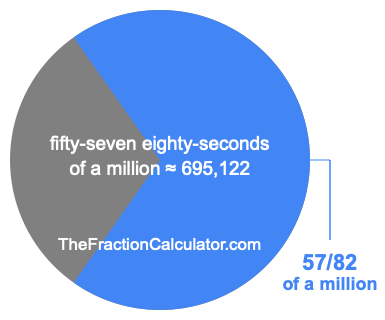 If you want to calculate 57/82 of a million (fifty-seven eighty-seconds of a million), then you want to divide one million (1,000,000) into 82 equal pieces and calculate the sum of 57 of those pieces.