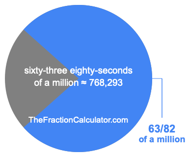 If you want to calculate 63/82 of a million (sixty-three eighty-seconds of a million), then you want to divide one million (1,000,000) into 82 equal pieces and calculate the sum of 63 of those pieces.