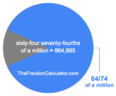 Therefore, 64/74 of a million is the quotient of one million divided by 74, multiplied by 64. Here is the math and the answer: