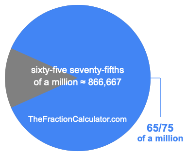 Therefore, 65/75 of a million is the quotient of one million divided by 75, multiplied by 65. Here is the math and the answer: