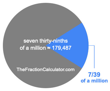 Therefore, 7/39 of a million is the quotient of one million divided by 39, multiplied by 7. Here is the math and the answer: