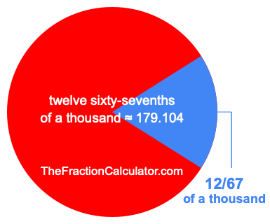 If you want to calculate 12/67 of a thousand (twelve sixty-sevenths of a thousand), then you want to divide one thousand (1,000) into 67 equal pieces and calculate the sum of 12 of those pieces.