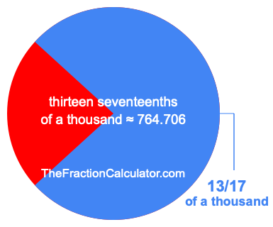 Therefore, 13/17 of a thousand is the quotient of one thousand divided by 17, multiplied by 13. Here is the math and the answer: