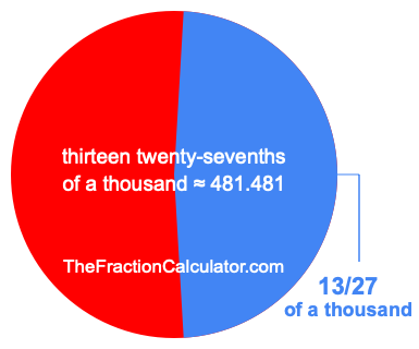 Therefore, 13/27 of a thousand is the quotient of one thousand divided by 27, multiplied by 13. Here is the math and the answer: