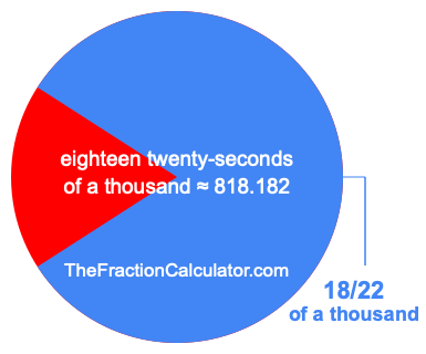 Therefore, 18/22 of a thousand is the quotient of one thousand divided by 22, multiplied by 18. Here is the math and the answer:
