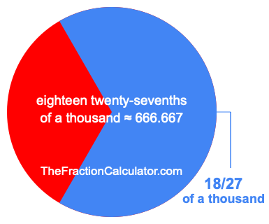 Therefore, 18/27 of a thousand is the quotient of one thousand divided by 27, multiplied by 18. Here is the math and the answer: