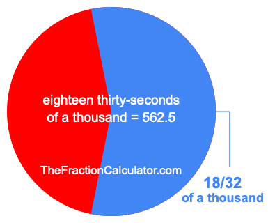 If you want to calculate 18/32 of a thousand (eighteen thirty-seconds of a thousand), then you want to divide one thousand (1,000) into 32 equal pieces and calculate the sum of 18 of those pieces.