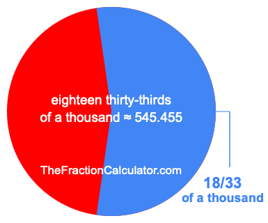 Therefore, 18/33 of a thousand is the quotient of one thousand divided by 33, multiplied by 18. Here is the math and the answer: