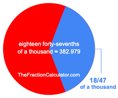 Therefore, 18/47 of a thousand is the quotient of one thousand divided by 47, multiplied by 18. Here is the math and the answer: