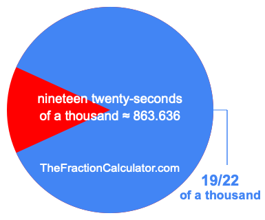 Therefore, 19/22 of a thousand is the quotient of one thousand divided by 22, multiplied by 19. Here is the math and the answer: