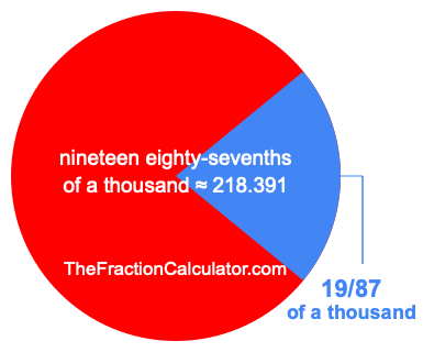 Therefore, 19/87 of a thousand is the quotient of one thousand divided by 87, multiplied by 19. Here is the math and the answer: