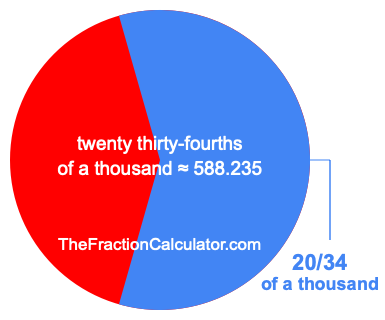 Therefore, 20/34 of a thousand is the quotient of one thousand divided by 34, multiplied by 20. Here is the math and the answer: