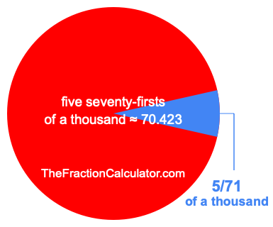 If you want to calculate 5/71 of a thousand (five seventy-firsts of a thousand), then you want to divide one thousand (1,000) into 71 equal pieces and calculate the sum of 5 of those pieces.