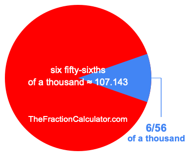 Therefore, 6/56 of a thousand is the quotient of one thousand divided by 56, multiplied by 6. Here is the math and the answer: