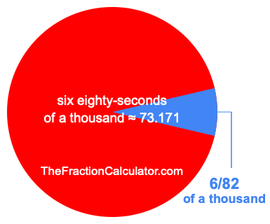 Therefore, 6/82 of a thousand is the quotient of one thousand divided by 82, multiplied by 6. Here is the math and the answer: