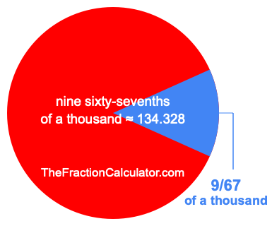 Note that 9/67 of a thousand will result in the same answer regardless of what you are referring to. For example, you might calculate 9/67 of a thousand dollars or 9/67 of a thousand people.