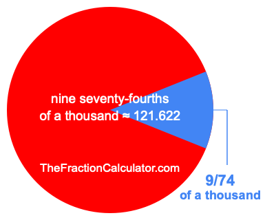 Therefore, 9/74 of a thousand is the quotient of one thousand divided by 74, multiplied by 9. Here is the math and the answer: