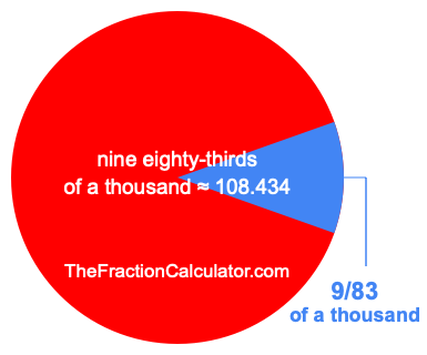Therefore, 9/83 of a thousand is the quotient of one thousand divided by 83, multiplied by 9. Here is the math and the answer: