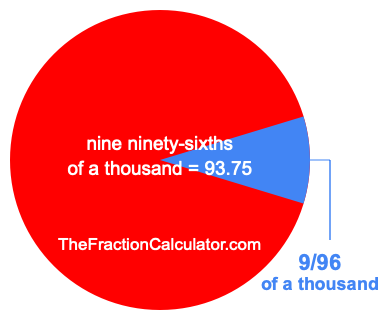 If you want to calculate 9/96 of a thousand (nine ninety-sixths of a thousand), then you want to divide one thousand (1,000) into 96 equal pieces and calculate the sum of 9 of those pieces.