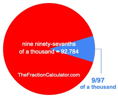 Note that 9/97 of a thousand will result in the same answer regardless of what you are referring to. For example, you might calculate 9/97 of a thousand dollars or 9/97 of a thousand people.